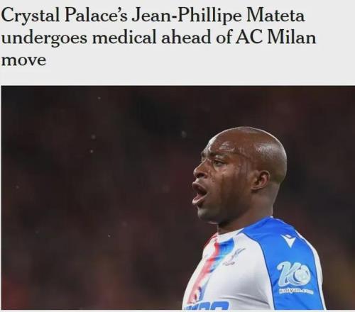 TA记者DO消息,马特塔已经在接受米兰的体检,他接近完成从水晶宫加盟红黑军团的转会。米兰已经和水晶宫就马特塔3000万欧元以上的转会费达成了协议,这名28岁的中锋将完成交易。天空体育也报道了类似的消息。