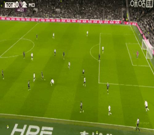 上半场第10分钟,谢尔基禁区右侧突施冷箭,球直奔死角!曼城1比0热刺。