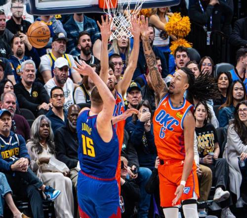 此后霍姆格伦和约基奇对轰三分,当掘金一路追到只差3分时,华莱士又开始扔三分球,维金斯和亚历山大也弹无虚发,雷霆前后打出一波15-2的高潮!布鲁斯布朗三分球终于止血,杰林和维金斯又内突外投,三节打完时,雷霆101-85领先掘金。决战第四节,沃特森和布鲁斯布朗下三分雨,掘金稍稍追回一些分差。中段双方陷入拉锯战,当掘金迫近分差时,亚历山大和霍姆格伦轮流造杀伤,亚历山大撤步跳投+反击扣篮杀死比赛悬念。掘金缴械投降。最终雷霆121-111完胜掘金!